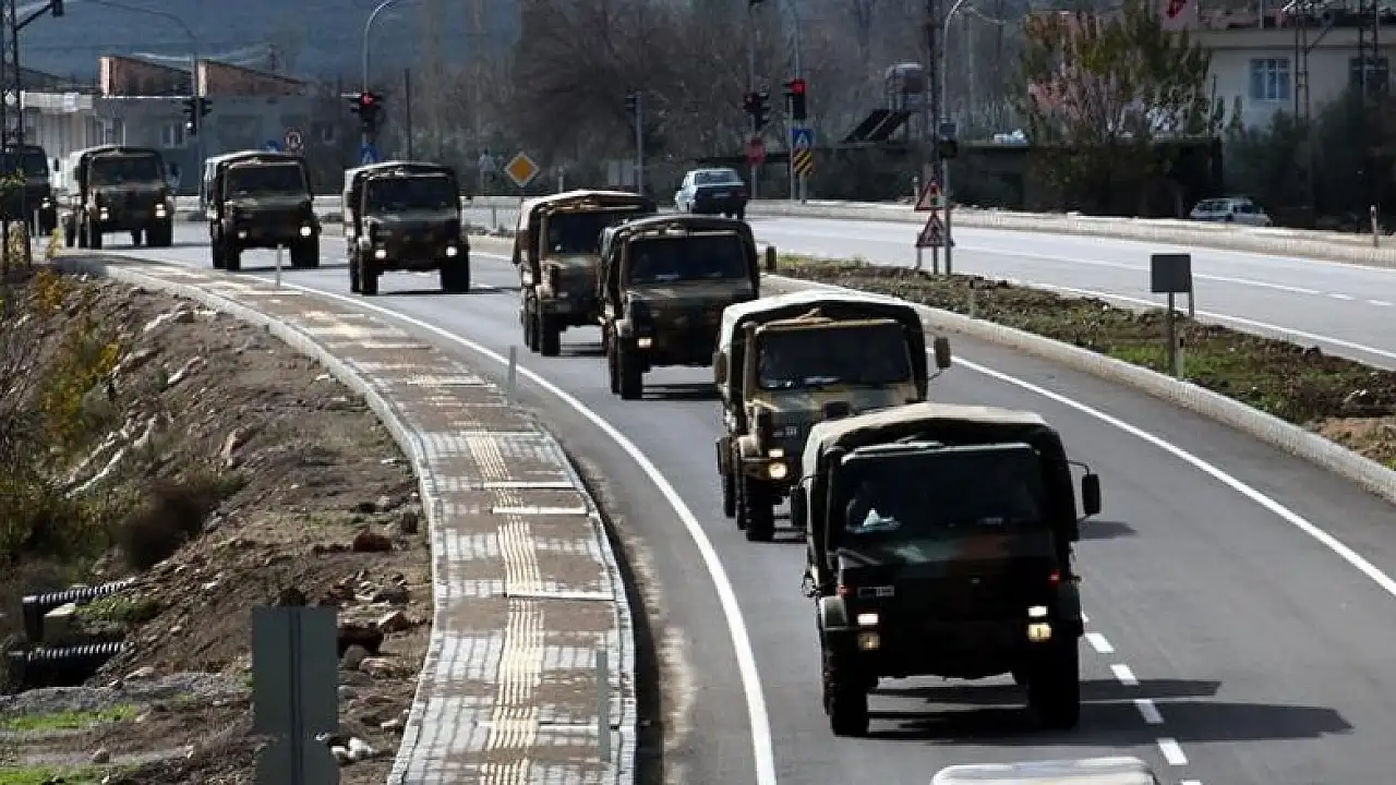 TSK tarafından Suriye sınırındaki birliklere takviye amacıyla gönderilen askeri araçlar Hatay'a ulaştı.
