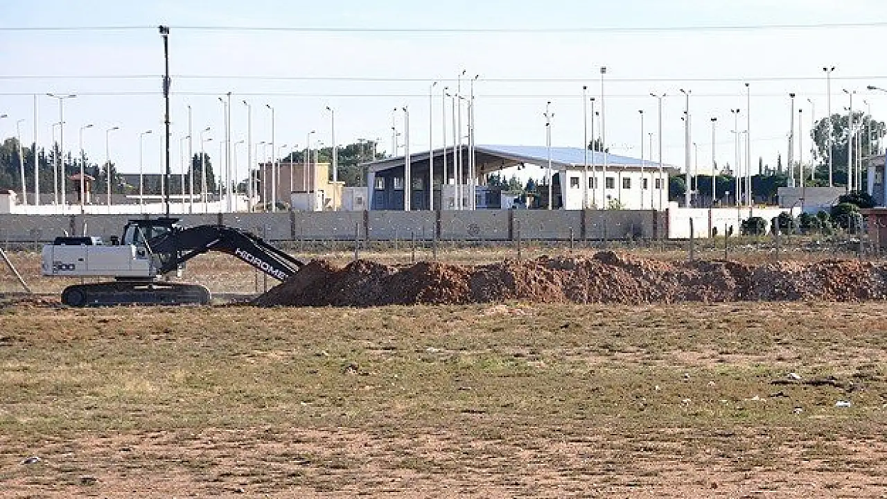 Akçakale Gümrük Kapısı yanındaki sınır telleri önünde başlatılan çalışma kapsamında, iki metre genişliğinde ve üç metre derinliğinde hendek kazılıyor.