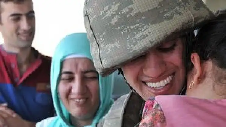 Nöbet kulesinde 24 saat sınır hattındaki gelişmeleri takip eden askerler, anne ve babalarıyla kucaklaşırken duygulu anlar yaşadı. Çocuklarına sarılarak hasret gideren aileler, çifte bayram yaşadıklarını dile getirdi.