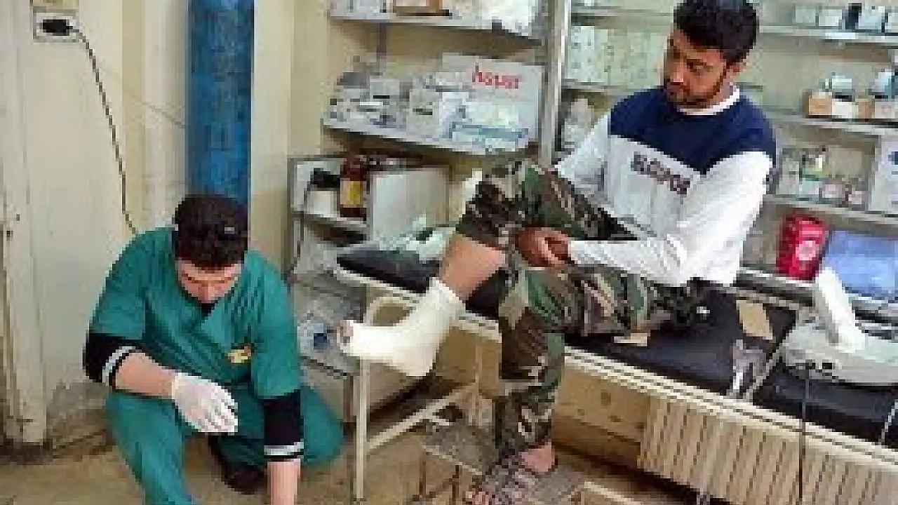 Suriye Ordusu'nun hastaneleri bombalamasının ardından çatışmalarda yaralananlar, bazı binalarda oluşturulan hastanelerde tedavi edilmeye çalışılıyor.