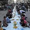 Suriye'nin başkenti Şam'da rejim güçlerinin kuşatması altındaki Duma ilçesinde açık havada kurulan bir kilometrelik iftar sofrasında 7 bin 500 kişi bir araya geldi.