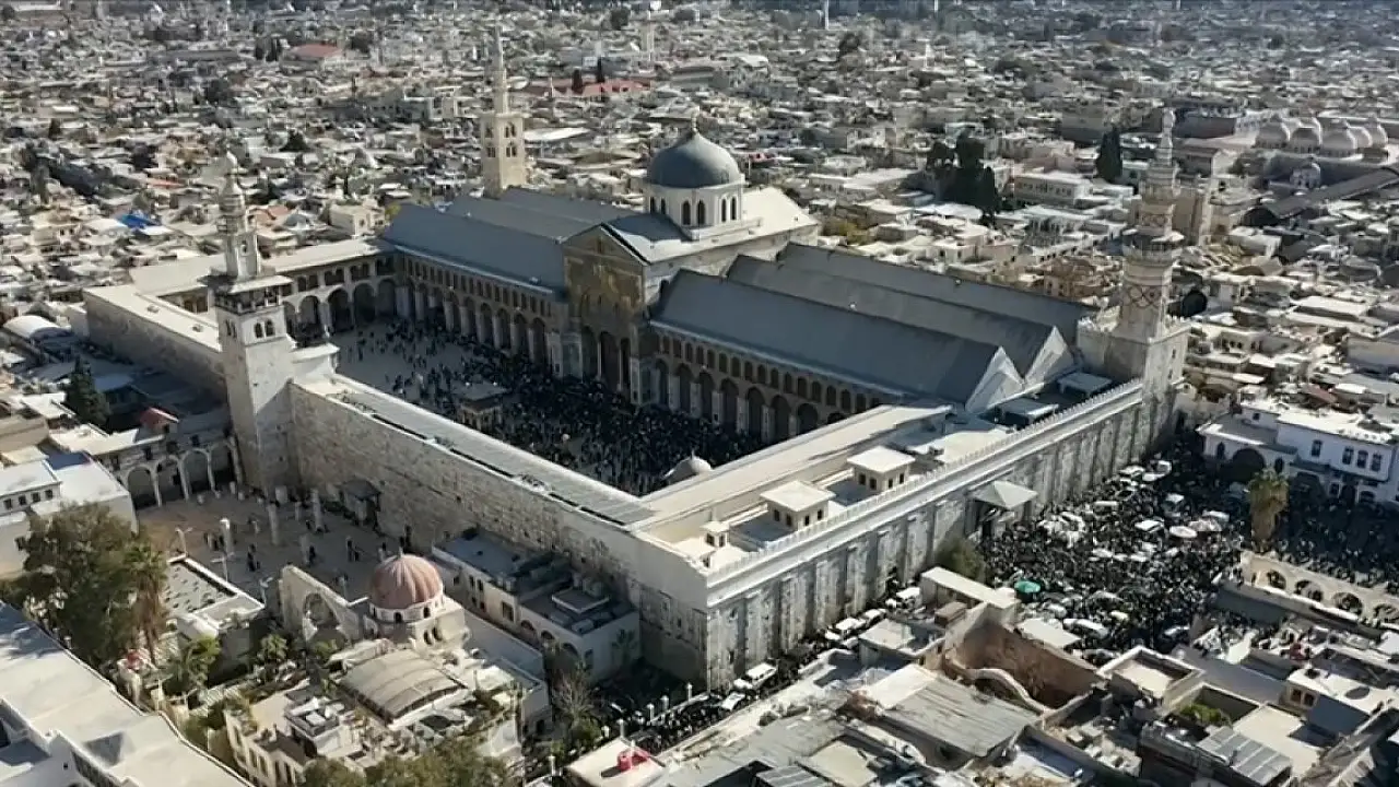 Suriye'de Baas rejiminin devrilmesinden sonra, başkent Şam'da bulunan Emevi Camisi'nde ilk cuma namazı kılındı.