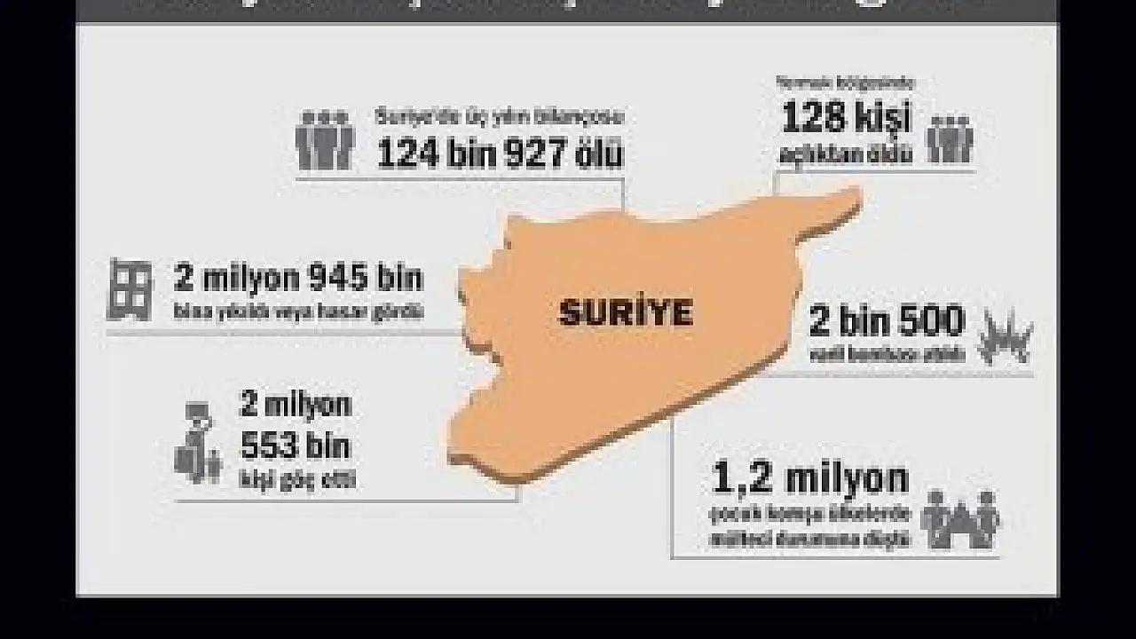 Suriye'de yönetim karşıtı protestolarda ilk can kaybının meydana geldiği 18 Mart 2011 tarihinden bu yana 124 bin 927 Suriyelinin hayatını kaybettiği, 2 milyon 553 kişinin komşu ülkelere göç ettiği, 2 milyon 945 bin binanın yıkıldığı veya hasar gördüğü bildirildi.