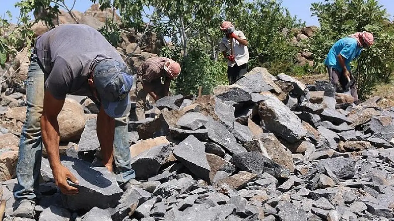 Taş yontma işi yapan Hüner Mansur, AA muhabirine yaptığı açıklamada, "En az 45 derece sıcaklıkta, güneşin tepede olduğu zamanlarda çalışmak zorunda kalıyoruz. Evimize ekmek götürmek için bunu yapmak zorundayız." dedi.