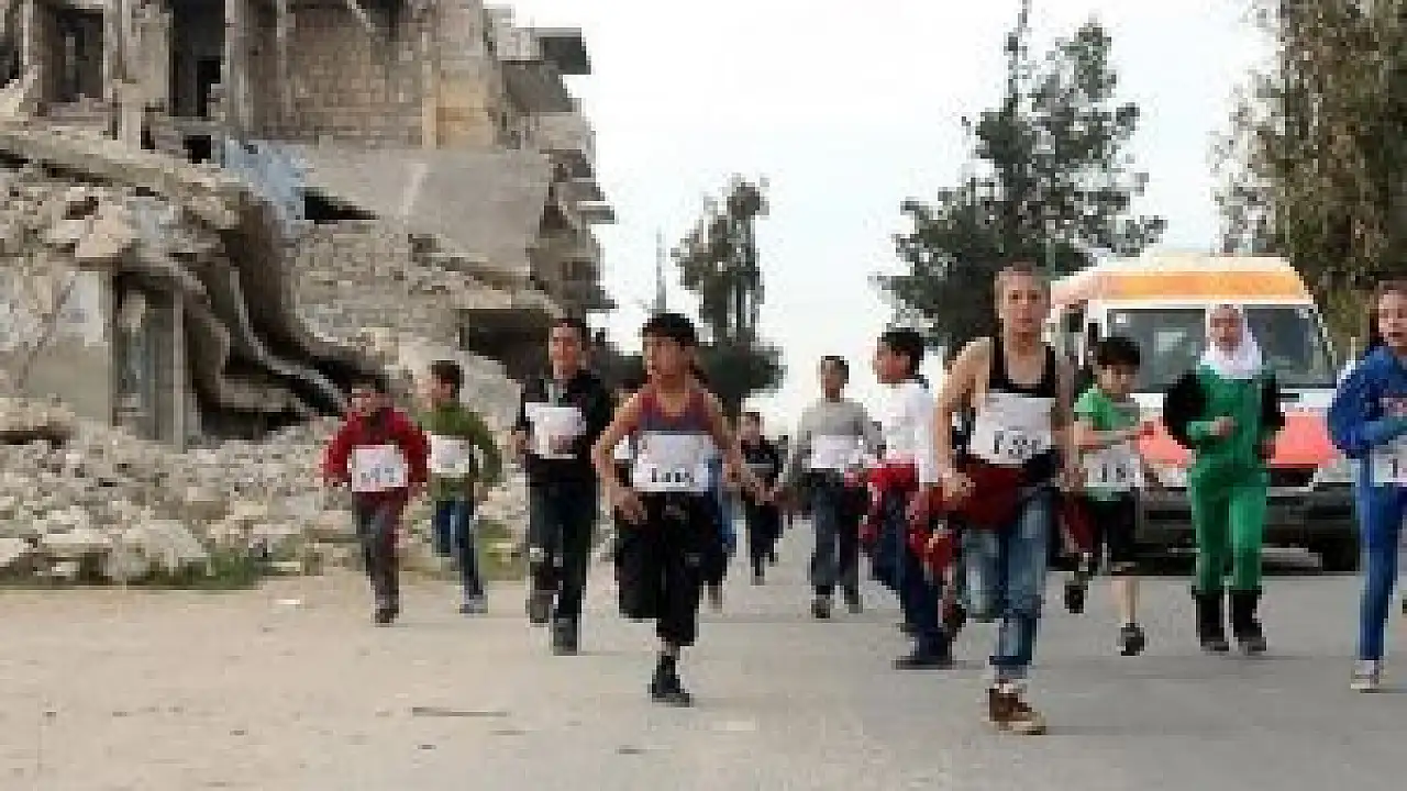 Suriye'de savaşın gölgesinde maraton