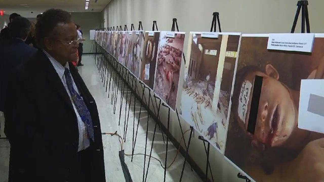 Suriye'de rejim tarafından işkence ve insanlık dışı yöntemlerle öldürüldüğü belirlenen 11 bin kişiye ait fotoğraflardan bazılarının yer aldığı sergi BM'nin New York'taki Genel Merkezi'nde açıldı.