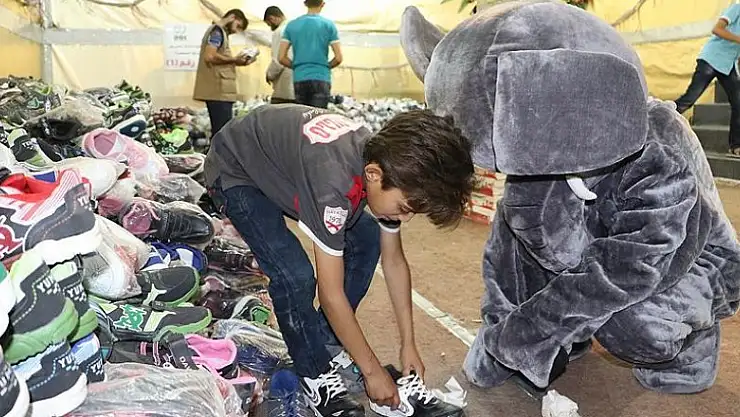 Suriye'deki yetimlere ayakkabı yardımı
