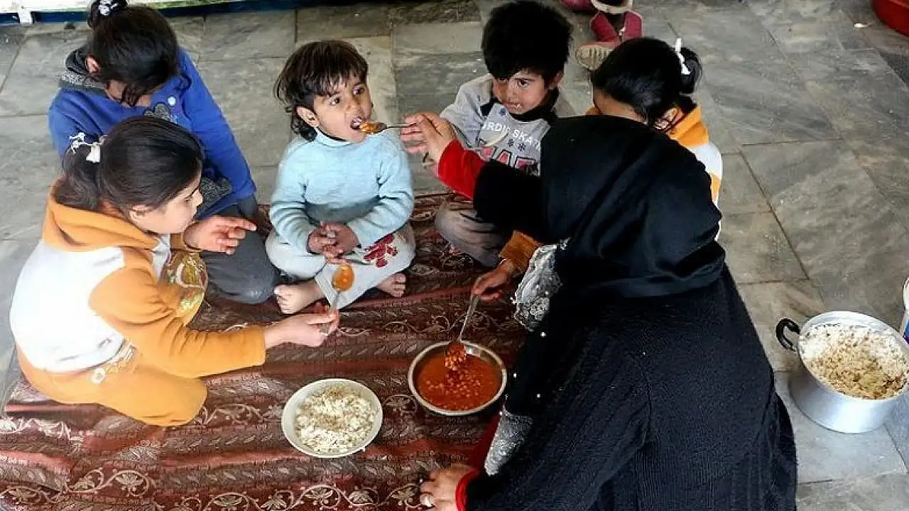İki parça halı, battaniye, birkaç yatak ve mutfak malzemesi ile eski buzdolabından başka eşyaları olmayan aile, elektriği ve sobası bulunmayan dükkanda, hayırsever kuruluşlar ile komşularının verdiği malzemeler ve yemeklerle karınlarını doyuruyor.
