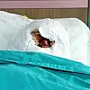 Yanıklar nedeniyle vücudunun neredeyse tamamı sargı beziyle kaplanan ve sadece yüzünün küçük bir bölümü açıkta kalan genç kadın, hayati tehlikeyi atlatarak sağlığına kavuşacağı günleri bekliyor.