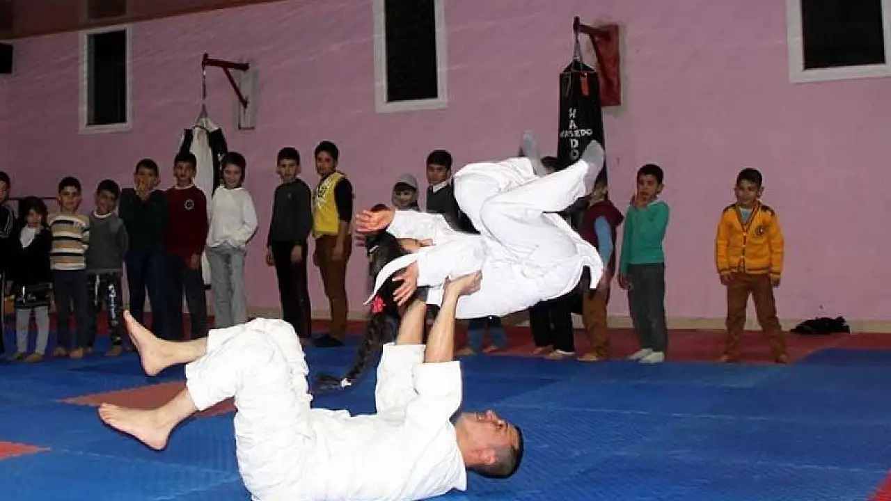Hatay'ın Yayladağı ilçesinde yaşayan Suriyeli çocuklara judo eğitimi veriliyor.