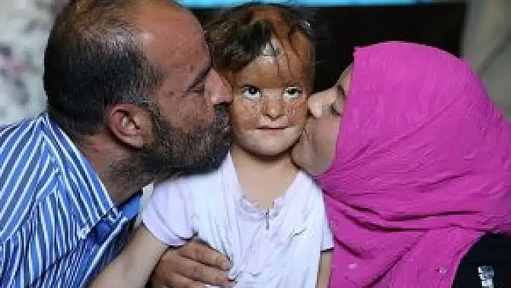 Suriye'de 7 ay önce, Esed rejiminin varil bombalı saldırısına maruz kalan ve yüzünün tamamı yanan, bir elinin de parmaklarını kaybeden 3 yaşındaki Fatma Husen El Ali, ailesiyle sığındığı Türkiye'de tedaviedileceği günü bekliyor.