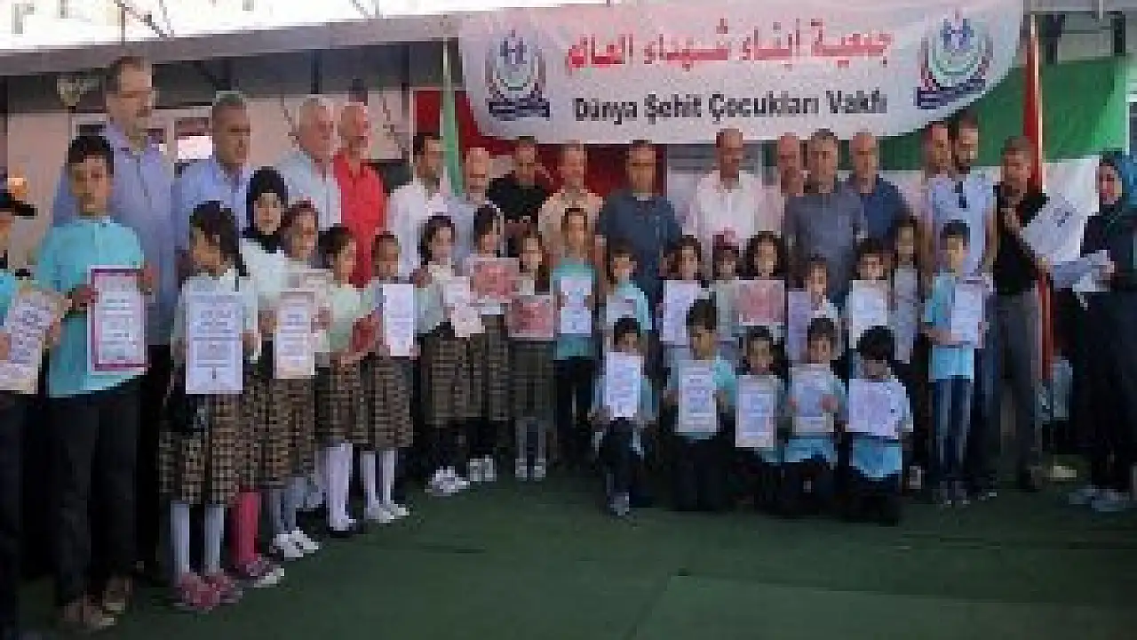 Dünya Şehit Çocukları Vakfınca Antakya'da kurulan Dünya Şehit Çocukları Okulu'nda eğitim gören 680 Suriyeli yetim karne aldı.