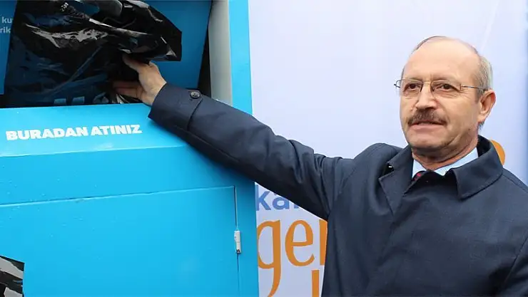 Konuşmaların ardından Ahmet Sorgun ve beraberindekiler, Suriyeli ihtiyaç sahiplerine ulaştırılacak yardım malzemelerini büyük kumbaraya bıraktı.