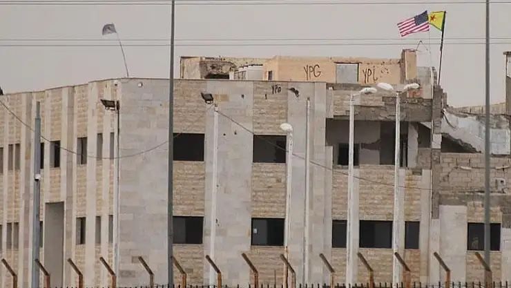 Suriye'nin Rakka kentine bağlı Tel Abyad ilçesinde terör örgütü PKK/PYD'nin gümrük binasının üstüne astığı ABD bayrağı bir haftadır yerinde duruyor.