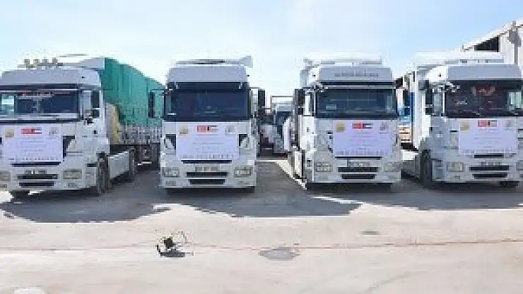 Suriye'ye temel gıda malzemesi ve battaniyelerden oluşan 52 tır insani yardım malzemesi gönderildi.