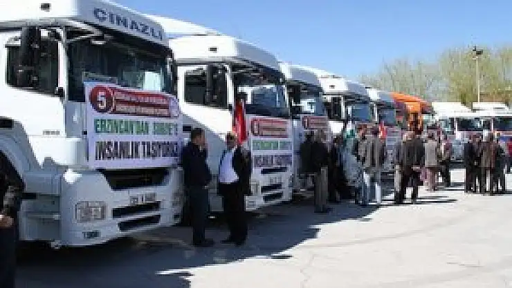 Erzincan'da 40 sivil toplum kuruluşunun iş birliğinde Suriyeliler için toplanan yardım malzemelerinin yüklendiği 15 tır, Hatay ve Kilis'teki sınır kapılarına gitmek üzere hareket etti.