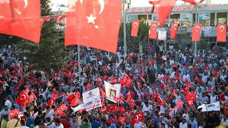 İlçedeki sivil toplum kuruluşları tarafından organize edilen etkinlikte Atatürk Meydanı'nda toplanan binlerce kişi, ellerindeki Türk bayraklarıyla, "Şehitler ölmez, vatan bölünmez", "Kahrolsun PKK", "Vekile uzanan eller kırılsın" şeklinde slogan attı.