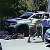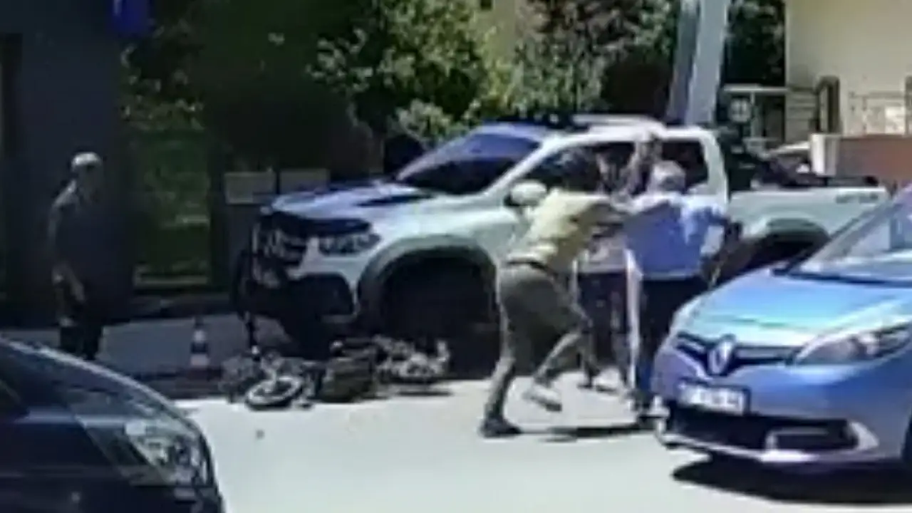 Motosikleti çalan kişinin kavgayı izlemesi, motoru yerden kaldırıp binerek uzaklaşması bir iş yerinin güvenlik kamerasına yansıdı.