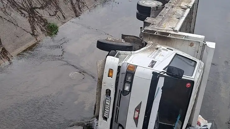 Sürücüsünün direksiyon hakimiyetini kaybettiği kamyon dereye uçtu