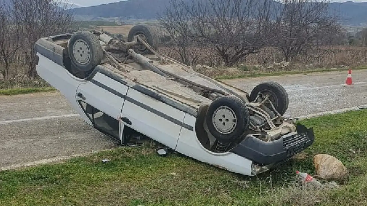 Manisa'nın Sarıgöl ilçesinde sürücüsünün direksiyon hakimiyetini kaybettiği otomobil takla atarak ters döndü.