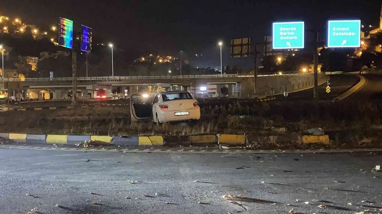 Zonguldak'ta Mithatpaşa Mahallesi köprülü kavşak mevkiinde sürücüsünün kontrolünden çıkan otomobil refüje çıktı.