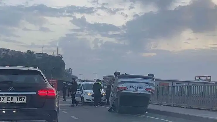 Zonguldak'ın Kozlu ilçesinde sürücüsünün kontrolünden çıkan otomobil önündeki araca çarparak takla attı.