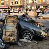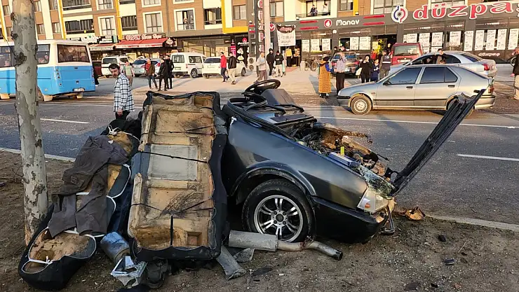 Sürücüsünün makas attığı otomobil, kamyonet ile refüje çarpıp ikiye bölündü