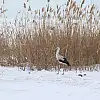 Konya'nın Beyşehir ilçesinde yaz sonunda sıcak ülkelere göç etmeyen ve Beyşehir Gölü'nün buz tutuması nedeniyle yiyecek bulmakta zorlanan leylek, balıkçılar tarafından besleniyor