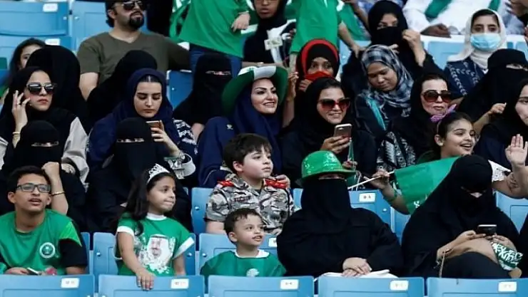 Suudi Arabistan, ülkenin kuruluşunun 87. yıldönümünü kutlarken Riyad'daki Kral Fahd Stadı'nı tarihte ilk defa kadınlara açtı.