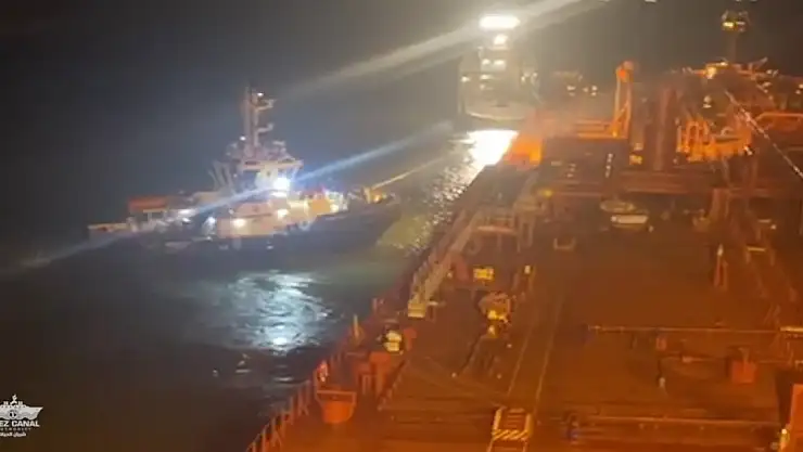 Yetkililer, bu sabah açıklama yaparak 252 metre uzunluğundaki 64 bin tonluk tankerin, Mart 2011 tarihinde karaya oturarak günlerce kanal trafiğini durduran Evergiven gemisinin karaya oturduğu yere yakın olduğunu ifade etti. Açıklamada, bu sefer kurtarma operasyonunun başarıyla gerçekleştiği ve tankerin saatler içinde 5 römorkör yardımıyla yüzdürüldüğü vurgulandı.