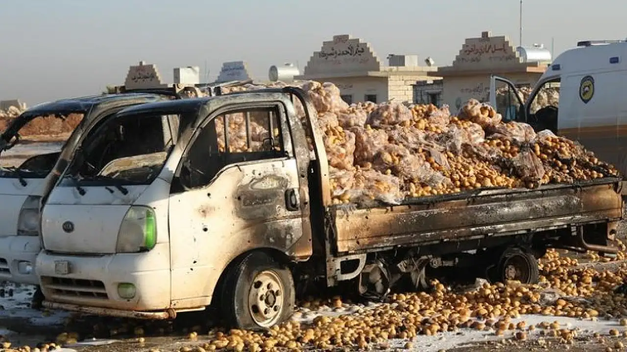 Nombre de camions chargés de pommes de terre ont également endommagés des suites de l’attaque sur le marché.