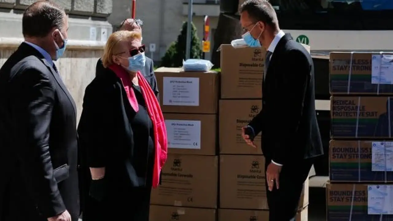 Mađarski ministar vanjskih poslova i trgovine nakon sastanka s Turković predao 200.000 zaštitnih maski i 10.000 zaštitnih odijela