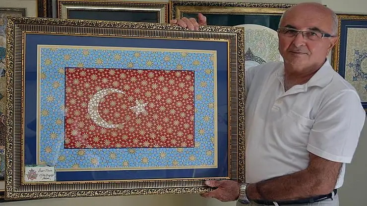 Balıkesir'in Edremit ilçesinde üçüncü kişisel sergisini açan Bursalı tezhipsanatçısı Öner Vancı, tablolarında 22 ayar altın tozu kullanıyor.
