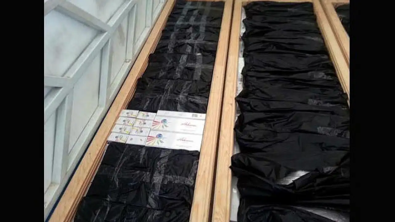 Kamyonetin kasasında bulunan dört tabutların içini kontrol eden polis ekipleri, 21 bin 800 paket gümrük kaçağı sigara ele geçirdi.
