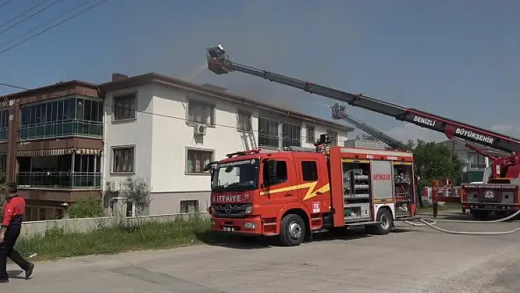 DENİZLİ(İHA) – Denizli'de bir apartmanın çatı katında tadilat yapıldığı esnada yangın çıktı.