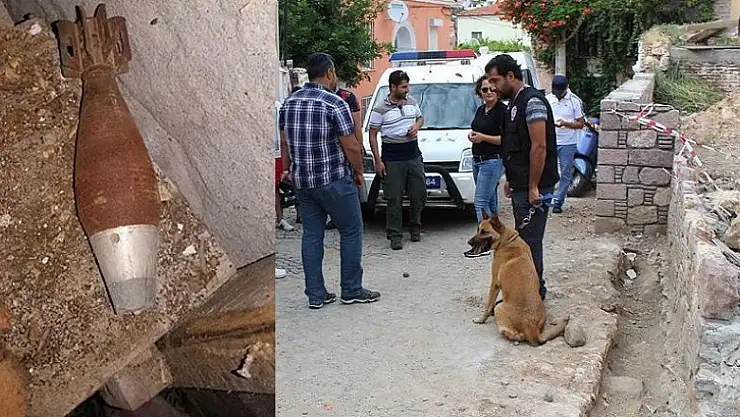 Balıkesir'in Ayvalık ilçesinde tadilat yapılan bir evin bahçesindeki kömürlükte patlamamış havan mermisi bulundu.