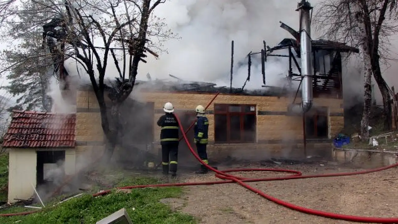 BOLU'da, Abant Tabiat Parkı'nda tadilatta olan ev, çıkan yangında kullanılamaz hale geldi.