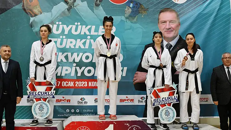 Türkiye Taekwondo Federasyonu tarafından Konya’da düzenlenen Türkiye Taekwondo Şampiyonası 72 farklı şehirden 745 kulüp ve 2047 sporcunun katılımıyla Karatay Spor ve Kongre Merkezinde devam ediyor. Kadınlar 67 kg da mücadele eden Selçuklu Belediyespor Kulübü sporcuları İkra Kayır ve Sıla Nur Gençer ikincilik ve üçüncülük elde ederek kürsüye çıkma başarısı gösterdi. Yarı finalde karşılaştığı rakibine mağlup olarak Türkiye üçüncülüğü elde eden Sıla Nur Gençer, Türkiye Şampiyonasını bronz madalya ile tamamladı. Kategorisinde finale yükselme başarısı gösteren İkra Kayır final maçında rakibine mağlup olarak ikinci oldu. Türkiye Şampiyonasında dereceye giren Selçuklu Belediyespor Kulübü sporcularına ödüllerini Selçuklu Belediyespor Kulübü Başkanı ve Türkiye Taekwondo Federasyonu Yönetim Kurulu Üyesi Mustafa Yavuz Tezcan takdim etti.