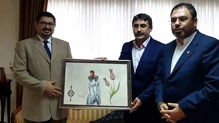 Tahir Büyükkörükçü Anadolu İmam Hatip Lisesi Müdürü Mehmet Avcı ve Arapça Koordinatörü Salih Uysal, Sudan Türkiye Büyükelçisi Yusuf Ahmet et-Tayib Yusuf el-Kordofani'yi ziyaret etti