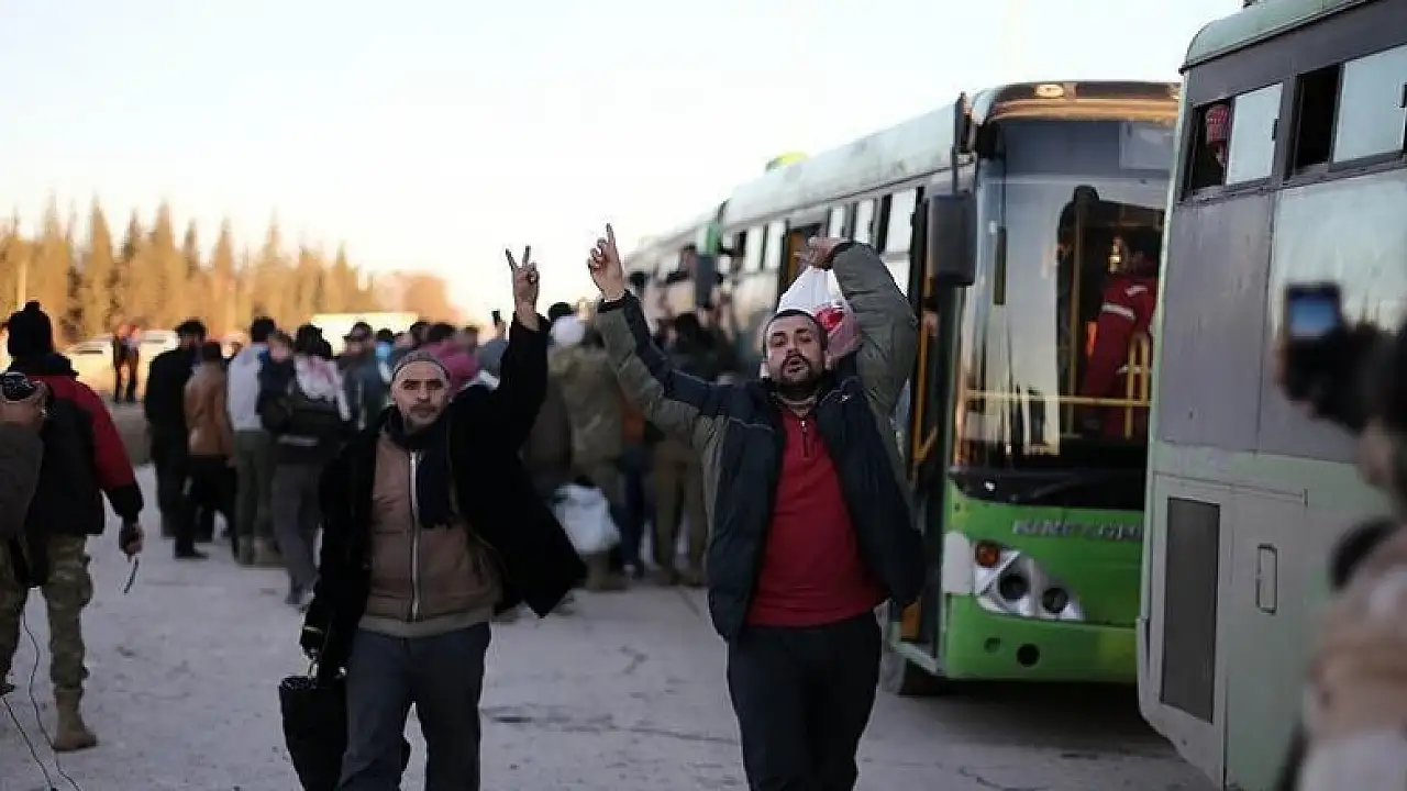 İran komutasındaki Şii milisler ile rejim kuşatmasındaki doğu Halep'ten yola çıkan ilk tahliye konvoyundakiler, muhaliflerin kontrolündeki bölgeye ulaşmanın sevincini yaşadı.