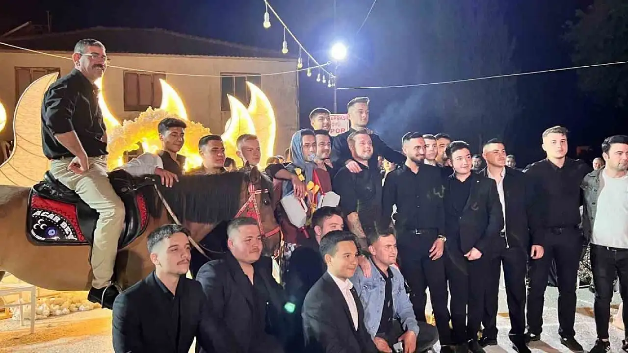 Düğün törenine katılanlar gönüllerince eğlenirken sıra takı merasimine geldiğinde hayvancılık yaparak geçimini sağlayan damada takılan takılar da farklı oldu. Çiftin arkadaşlarından Hakkı Eren, geline takı töreninde buzağı hediye etti. Damadın arkadaşı ve sağdıcı Utku Ercen ve amcası Halil Acar ise damada takı merasimi sırasında takı olarak birlikte aldıkları atı hediye etti.