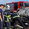 Takla atan araçtaki sürücüyü emniyet kemeri kurtardı