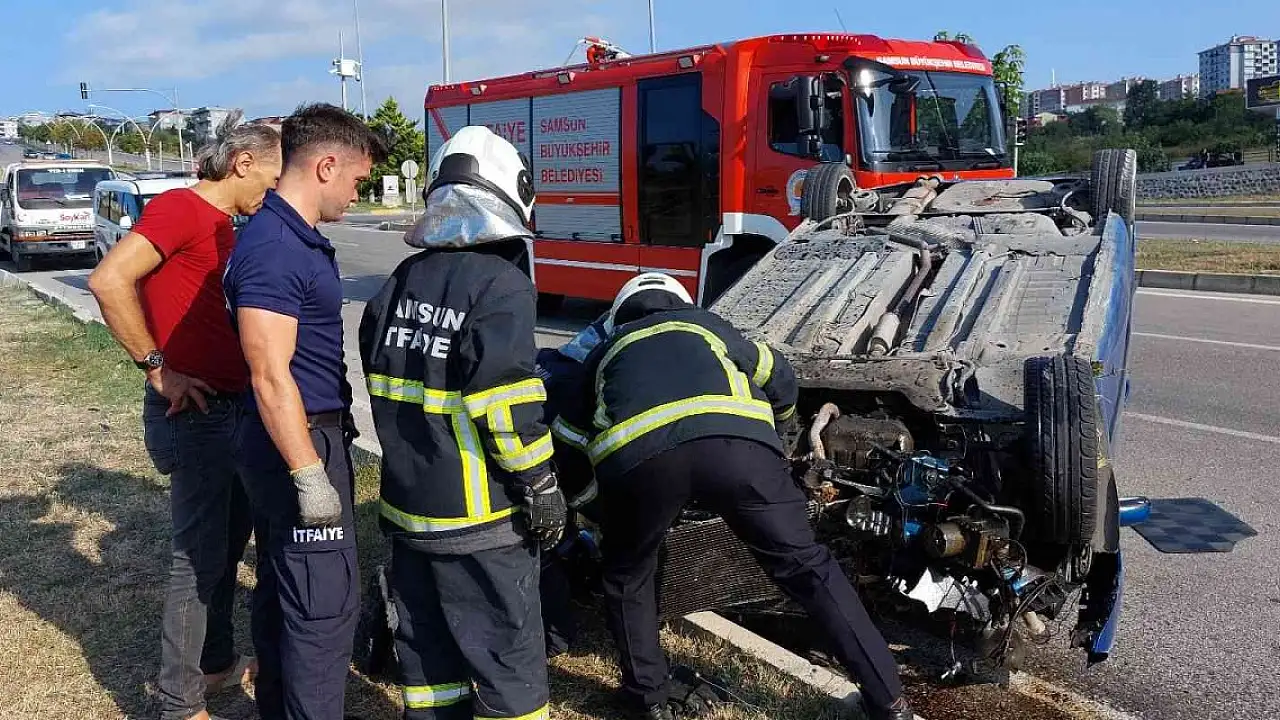 Samsun'da otomobilin takla atarak sürüklenmesi sonucu meydana gelen trafik kazasında araç sürücüsünü emniyet kemeri kurtardı.