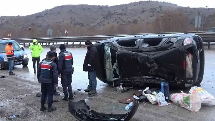 Kırıkkale'de memleketlerine giden iki gurbetçi kardeş, karla karışık yağmur sebebiyle kayganlaşan yolda metrelerce takla atarak hurdaya dönen otomobilden sağ kurtuldu.