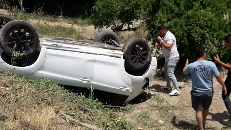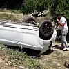 Takla atan otomobil şarampolde ters döndü: 2 yaralı