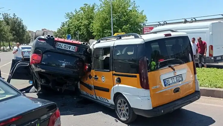 DİYARBAKIR'da, takla atan ve karşı yönde kırmızı ışıktaki taksiye çarpan otomobilin sürücüsü yaşamını yitirdi, 1'i ağır 2 kişi yaralandı.