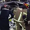 Takla atan otomobilde sıkışan sürücüyü itfaiye kurtardı