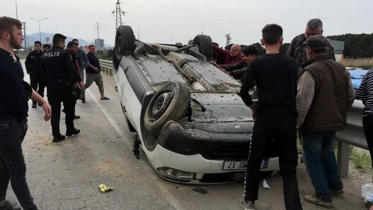 Takla atan otomobildeki anne ile iki çocuğu yaralandı