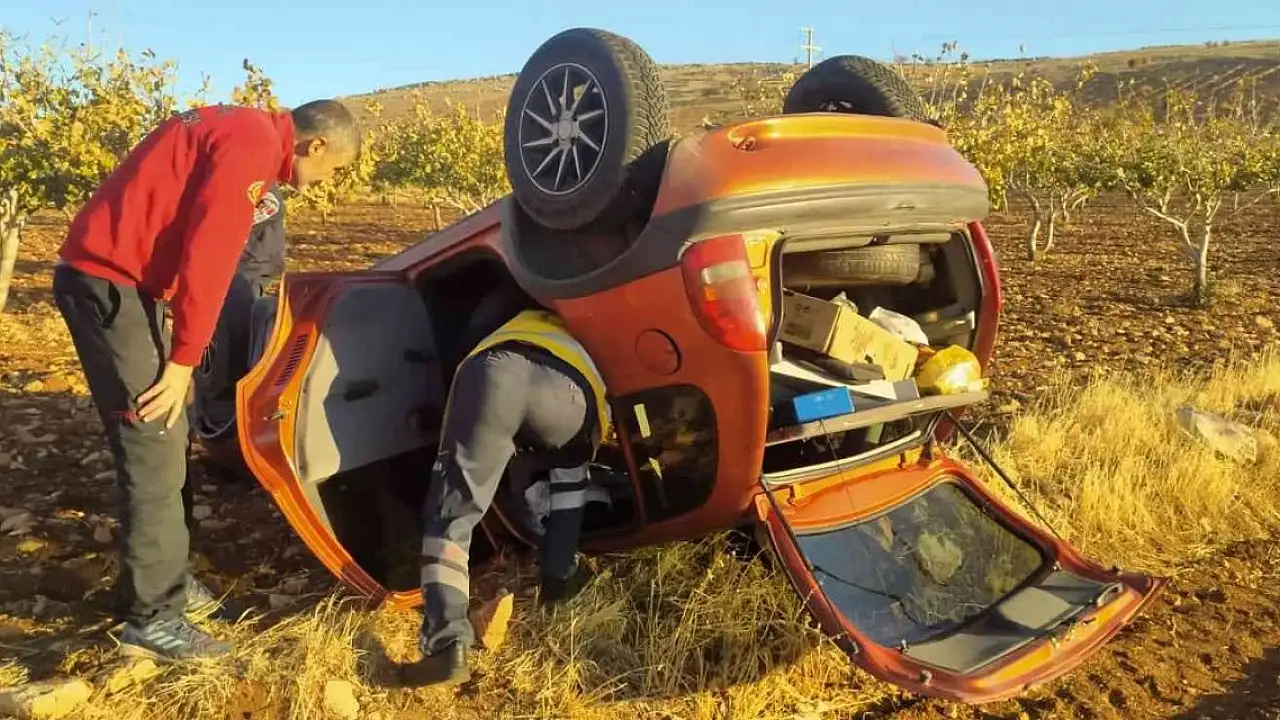 Şanlıurfa'nın Bozova ilçesinde, takla atan otomobilin sürücüsü burnu bile kanamadan kurtuldu.