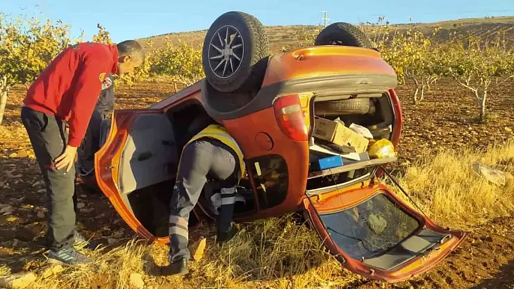 Takla atan otomobilin sürücüsü burnu bile kanamadan kurtuldu.